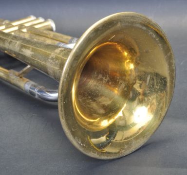 Musical Instruments: A vintage 20th Century continental brass J. R. Lafleur & Sons trumpet by Zenith carrying case, with mouthpiece.