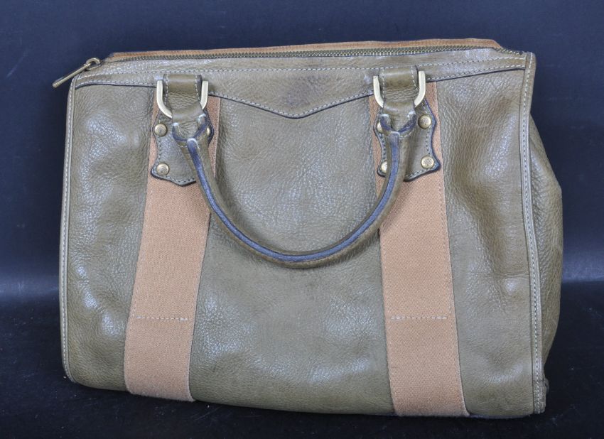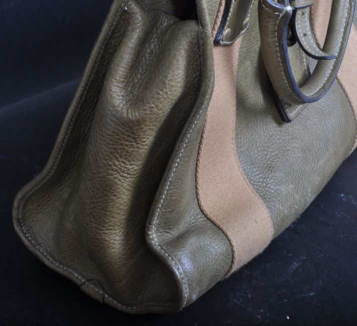 MULBERRY - A vintage green leather Bayswater mini handbag with twin handles and zip atop. Impressed Mulberry logo to the inside and grass fob to the inside.