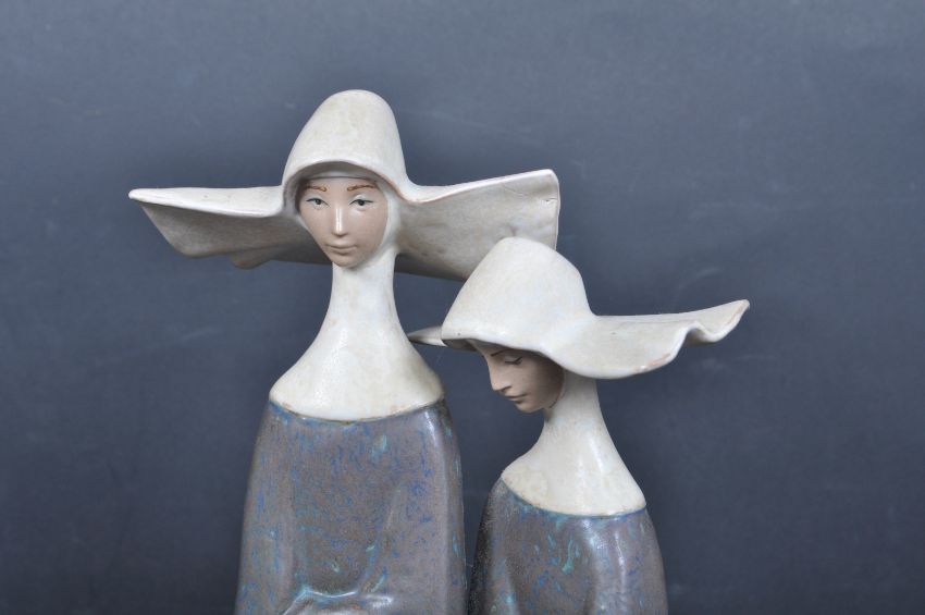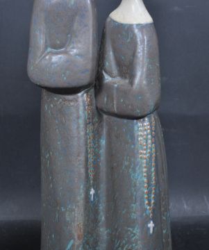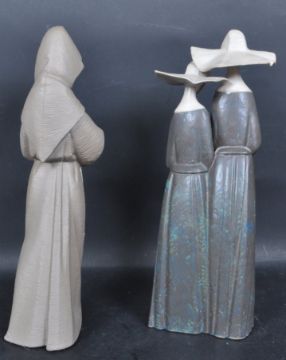 A pair of late 20th century Spanish Lladro ceramic figurines. The collection comprising of Nuns - 2075 by Fulgencio Garcia and Monk - 2060 design by Salvador Debon. All with makers mark to the underside. Measures 36 cm tall.