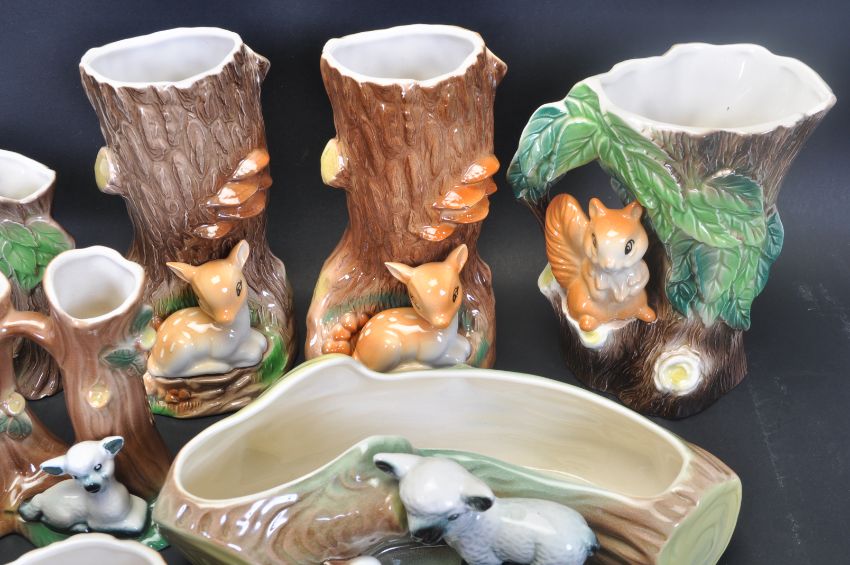 A large collection of vintage 20th century Hornsea ceramics in the Woodland Critters pattern. The pottery having polychrome decoration of trees, foliage and animals. Makers stamp to the underside. Measures 17 cm tall.