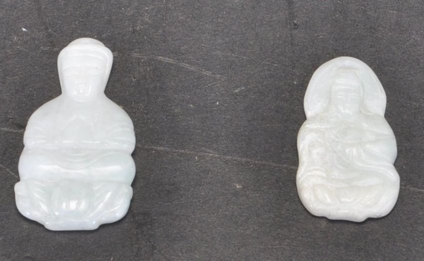 Two 20th century Chinese oriental hand carved jade pendants. The pendants depicting two Chinese oriental gods.