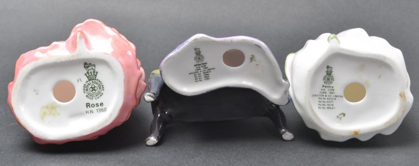 A group of three late 20th century Royal Doulton ceramic porcelain figurines to include Affection HN 2236, Rose HN 1368 and Penny HN 2338. All with makers mark to the underside. Measures 13 cm tall.