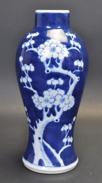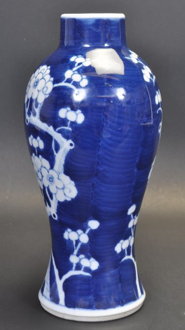 An early 20th century Chinese / Oriental Meiping vase having prunus decoration throughout and double circle stamp to the underside. Measures 24cm high. Good condition.