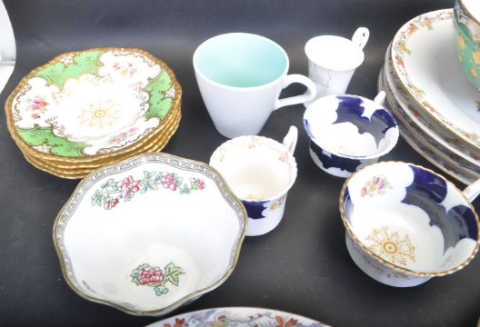 A large collection of 20th century ceramic porcelain table ware and cabinet ware. The collection comprising of 19th century Victorian dinner plate made by L. Bernardaud & Co for Waring & Gillow LTD, Coalport sandwich plate, saucers, cups, Poole pottery cups and pin tray and other cabinet cups and saucers. Makers mark to the underside. Measures 7 cm.