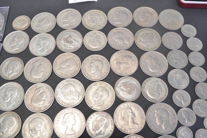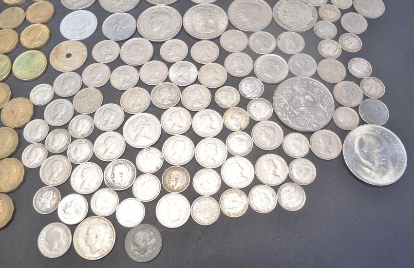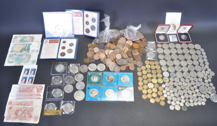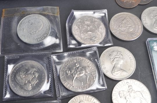 A large collection of British / UK coins / coinage to include one penny, half penny three pence, half crown, crown, commemorative medal coins, six pence, and many more.