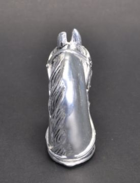 A vintage style silver plated horse head vesta case/ match case. Having a bridal to the horses head, and hinged lid to the base. Measures 7 cm tall.