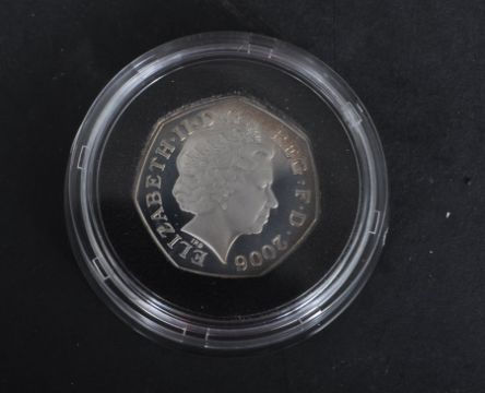 A collection of seven Royal Mint Silver Proof coins comprising of The Victorian Cross 50p two coin set, United Kingdom £2 Silver Proof set, Silver Proof Celebration of Football £2, United Kingdom Silver Proof £5 coin, Silver Queen Mother Centenary Crown.