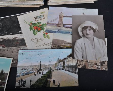 A large collection of approximately 800+ Mid 20th century postcards. The collection comprising of UK post cards and overseas, topographic, landscapes, landmarks, real photographs, mountains, and many more.