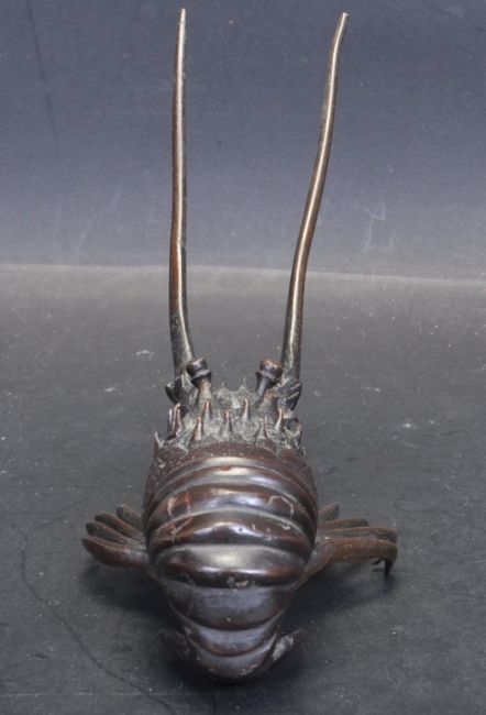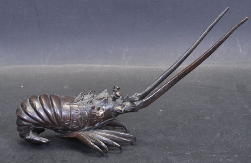 An early 20th century brass / bronze Japanese miniature lobster paperweight. The lobster paperweight having two long antenna, ten walking legs and tail fin. No makers marks. Measures 11 cm x 20 cm.