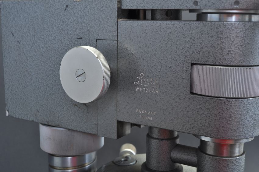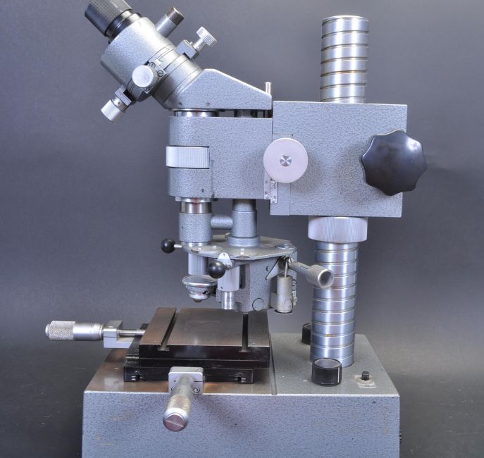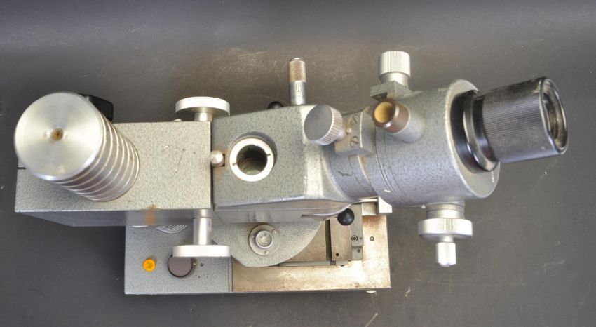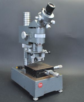 A vintage retro 20th century German made Leitz Wetzlar Miniload micro hardness tester. The miniload system tester is used for non destructive hardness tests with loads below 1 kg. The system is ideal for the inspection of tool edges, wires and failure investigations. The Mini load hardness tester produced by Leitz can be used to examine metallurgical samples at a magnification of up to 400x, offer precise measurement of coatings and micro structural features. The miniload tester / specialist engineer microscope having an indemnification plaque to the back reading Ernst Leitz GMBH Wetzlar type 060-366.002 No. 805841 to the base, Leitz Wetzlar Germany 792498 impressed mark to the body and Leitz Wetzlar Germany 5639 to the eyepiece body. Condition: Good condition, used condition, appear to be in working condition but sold as untested. Measures 47 cm tall.