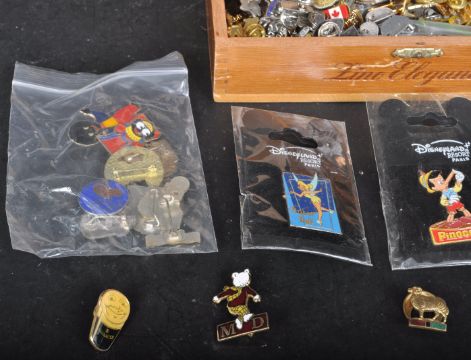 A collection of vintage 20th century enamel badges to include cartoons, clubs, countries and more.