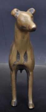 An early 20th century circa 1920’s bronze / brass paperweight in a form of a Greyhound dog posing in show position with the head turned slightly to the left. Measures 14 cm x 18 cm.
