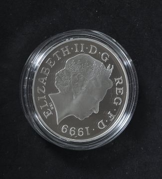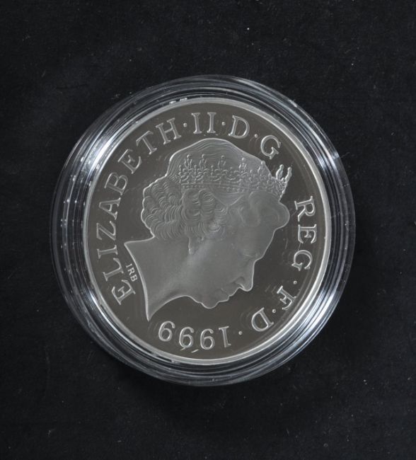 A collection of six Royal Mint silver proof coins comprising of a Millennium 2000 £5 coin, 150 Years of Public Libraries 50p, Royal Mint 2008 £1, DNA 50th Anniversary of the Double Helix £2, 100 Years of the Scouts 50p, Rugby World Cup 1999 £2. All boxed with certificates of authenticity.