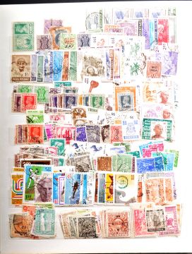 Stamps - a large all-world stamp collection spanning x6 slip-in albums. Includes; an album of France, Ceylon, Sri Lanka, Austria, Afghanistan, Weimar Republic etc - mostly mid-20th century, but some early 20th century also present. An album (blue) featuring mostly 20th century all-world stamps, but some Victoria present (Natal Postage One Penny eg), an album of all-world but the first page featuring George Washington stamps (3C, 8C, 1C etc), album featuring Third Reich / Germany amongst others etc. Albums mostly well filled.