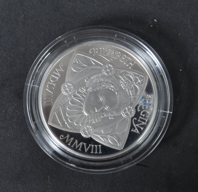 A collection of four Royal Mint Silver Proof coins comprising of a 2008 Queen Elizabeth I £5, 2008 Prince of Wales £5 coin, 4th Olympiad London 1908 £2, 2008 Olympic Games Handover ceremony £2. All boxed with Certificates of Authenticity.