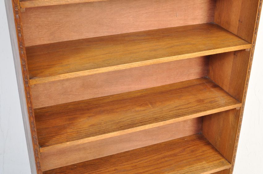 A retro vintage late 20th century teak wood open fronted bookcase of upright form having a bank of seven shelves. Measures: 244cm x 193cm.