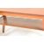 A retro vintage circa 1970s teak wood coffee table having curved edges raised on angular tapering supports united by a magazine tray together with a retro vintage leatherette pouffe of circular form. Measures 43cm x 80cm x 38cm.