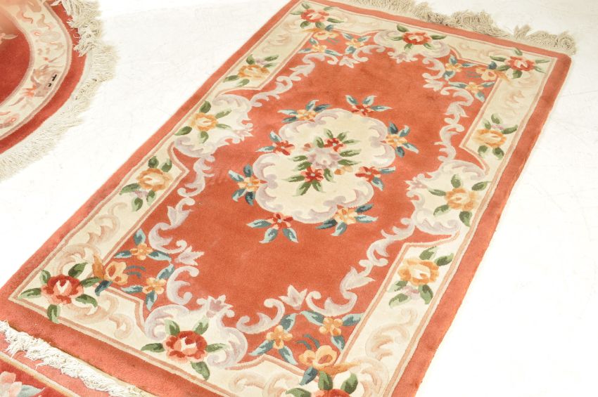A collection of 20th century floor rugs to include Persian ISlamic rectangular rugs, Chinese woollen rugs of circular and rectangular form along with others. Measures: 172cm x 94cm.