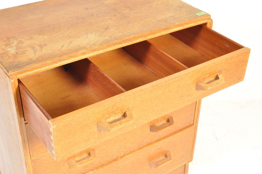G-Plan - Brandon Range - retro vintage circa 1960s oak chest of graduating drawers having twin wooden pulls raised on an upright base. Measures 85cm x 77cm x 47cm