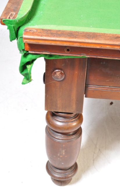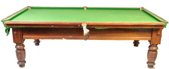 Early 20th Century circa 1910 snooker table by Riley's of Accrington of mahogany construction, slate base, felt baize raised on turned legs. Measurements 82cm x 257cm x 133cm.