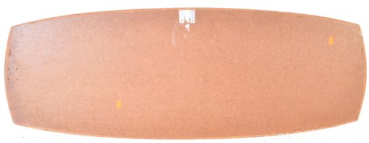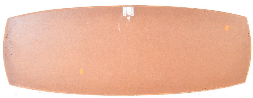 A vintage retro mid 20th century circa 1960’s Danish inspired wall hanging mirror. The mirror of a long oval form set on a teak wood back panel. Measures: 40cm x 107cm.