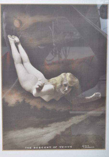 Charles Wesley Gilhousen - 1867 - 1929. Descent Of Venus. A signed dated and inscribed hand coloured gelatin silver print. Measures 47 cm x 37 cm.