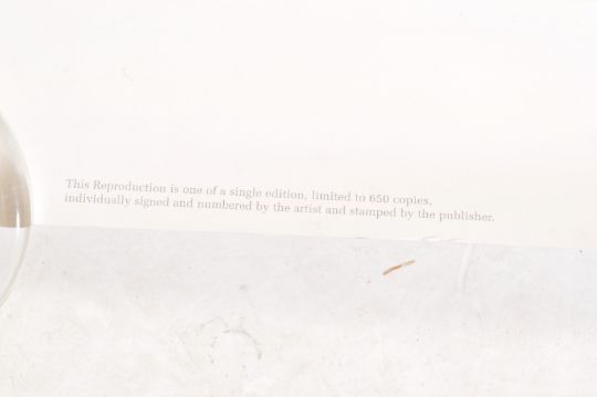 ARTISTS RE-SALE RIGHT. Buyers of the re-sold art of living artists will be charged the royalty where applicable. Currently this is 4% on any item sold at 1000 Euros or over, diminishing about 50,000 Euros. VAT is not applicable. Further details can be obtained from our office.