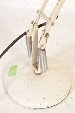A Herbert Terry retro 20th century white Anglepoise desk lamp having terraced base and in white colourway. Together with an early 20th century Singer sewing machine.