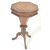 A 19th Century Victorian mahogany trumpet work box / sewing table of octagonal shape with hinged lid opening to reveal a fully appointed interior with sectional compartments having three red silk covers. Central column with further stunning walnut panelling having a bulbous carved section over scrolled tripod legs.