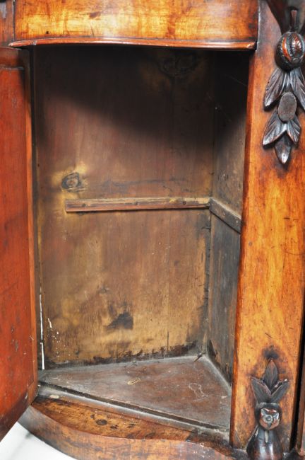A 19th Century Victorian walnut sideboard credenza having an arched mirror back panel with decorative carved leaf surround over a shaped base. Chamfered edge with marble top with a central door set with an oval mirror panel with further carved decoration flanked by mirrored doors to each side. All being raised upon a plinth base. Wear commensurate with age, overall good. Measures approx; 190cm x 145cm x 52cm.