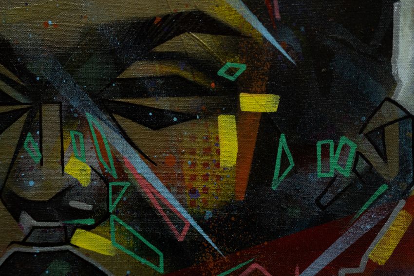 Elegwa Wyckliffe Afundi aka Swift9 Graffiti (Kenyan)Creation Rising, 2021Spray paint and acrylic on cotton canvas40 x 30 cm (15.7 x 11.8 in)Condition:New condition / Canvas on Frame