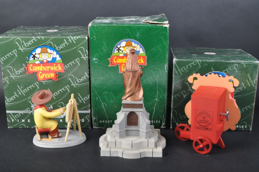 Camberwick Green – Robert Harrop – a collection of x3 statues / figurines. To include; CG121 The Artist & Easel, CGB03 Queen Victoria's Statue and CGMB2 The Dutch Organ Musical Box. Highly detailed resin statues based on the classic children’s animated series. All appear mint, with no damage. Boxed.