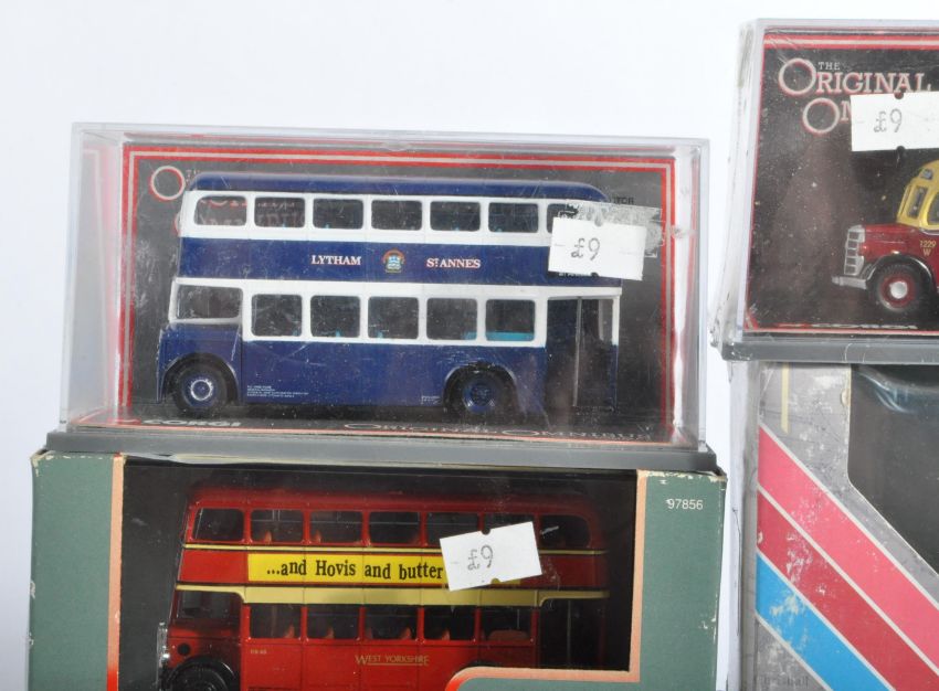 A collection of x8 assorted Corgi Original Omnibus and EFE Exclusive First Editions diecast model buses. Examples to include Corgi Bristol K6B West Yorkshire Road Car, Optare Delta Blackpool Transport, Bedford OB Coach British Railways, EFE Plaxton Coach South West, Alexander Fleetline Travel de Courcey and others. Contents appearing mint.