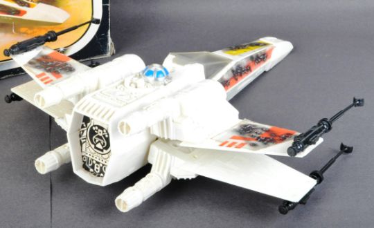 An original vintage 1983 Palitoy / Clipper made Star Wars action figure playset ' X WIng Fighter Vehicle ' with ' Battle Damaged Look Feature '. 100% complete, including the side cannons and canopy. In the original bi-lingual La Guerre ' Return Of The Jedi ' box. With original instructions present.