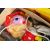 Two original vintage hand painted wooden marionette Pelham Puppets and a Romanian tinplate mechanical rabbit (with key). The puppets comprising Caterpillar with pink and blue furry body and a Dutch Girl with red felt bodice, hat and floral skirt (lacking wooden handle). Both puppets and rabbit retaining original boxes.