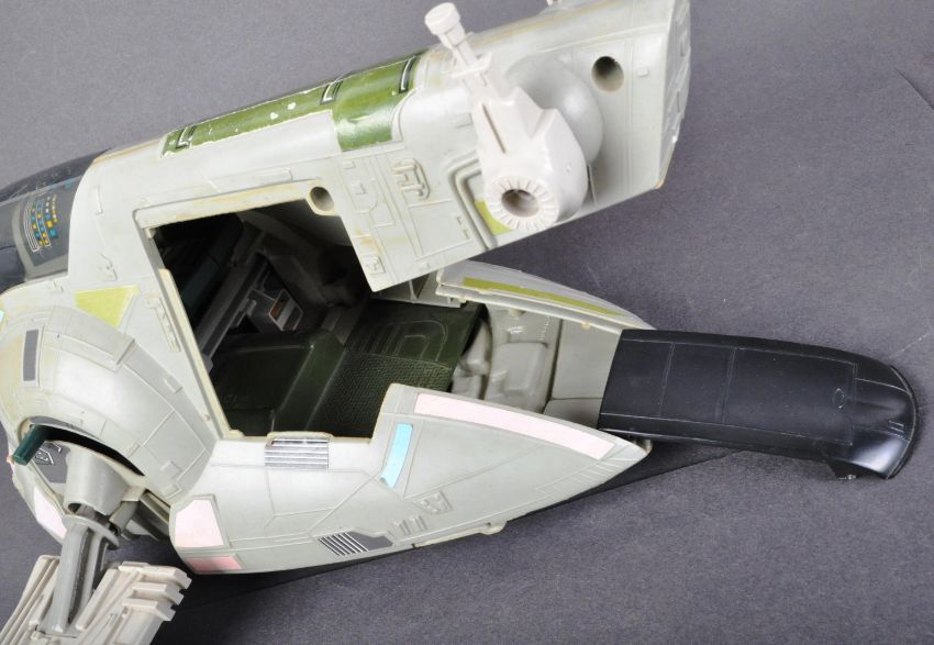 Star Wars - an original vintage Kenner / Palitoy made Star Wars action figure playset ' Slave 1 - Boba Fett's Spaceship '. 100% complete, including the canopy, top guns, hatch, fins, ramp and carbonite block. Along with an original vintage Boba Fett action figure (CPG 1979), with blaster. Unboxed.