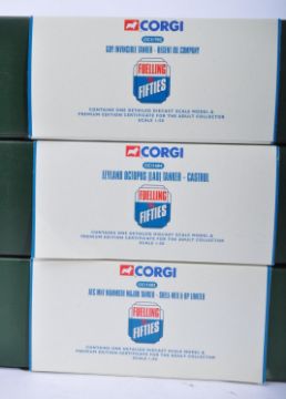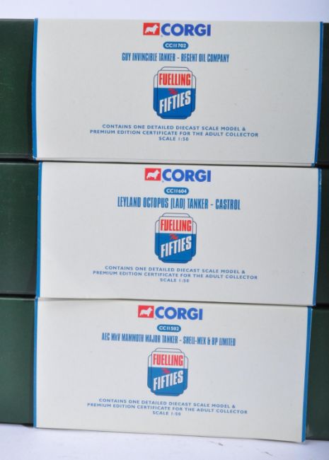 A collection of x6 Corgi Premium Edition diecast models from the ' Fueling The Fifties ' and ' British Railways ' range. Examples to include British Rail CC11301 Scammell Scarab, CC11001 Thames Trader Flatbed, Fueling The Fifties CC11604 Castrol Leyland Octopus Tanker, CC11702 Regent Oil Company Guy Invincible Tanker and others. Models appearing mint, with original boxes and outer sleeves.
