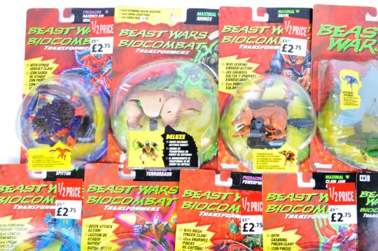 Transformers - Beast Wars Biocombat - a collection of original vintage Kenner made Beast Wars Transformers action figures. All upon their original backing cards, with bubbles (all opened to at least three sides). Each appearing complete, but are unchecked.