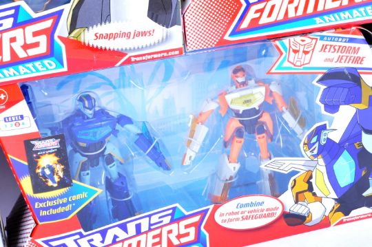 Transformers - a collection of x5 Hasbro made Transformers Animated series boxed action figures / playsets. Includes; Blitzwing, Bulkhead, Grimlock, Jetfire & Jetstorm, and Optimus Prime. All contents appear complete (but are unchecked). Boxes opened, and contents were displayed.