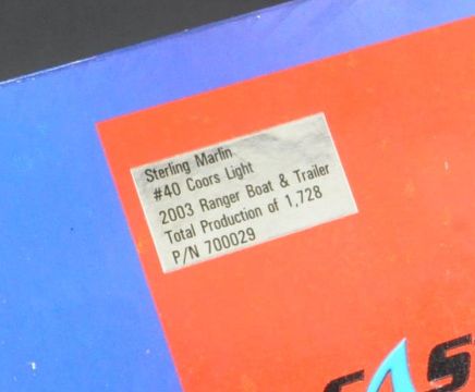 An original ' Action Collectibles ' 1/24 scale diecast model No. 40 Sterling Marlin Coors Light 2003 Ranger Boat & Trailer. Limited Edition to 1728. Contents appearing mint, within original box.
