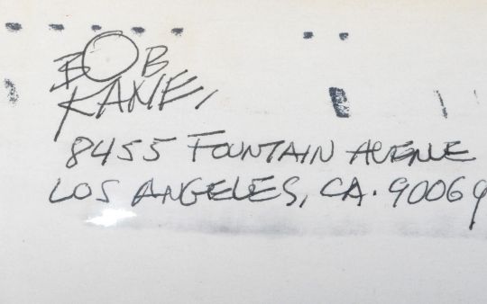 Batman - Bob Kane (1915-1998 - co-creator) - an original US Mail Envelope addressed to a Batman fan in New Jersey, signed to the top left by Kane in black ink, with his return address. Around the central address he has also doodled a Bat shape. Comes with a certificate of authenticity from Herman Darvick. Approx A4 size. Unique item.