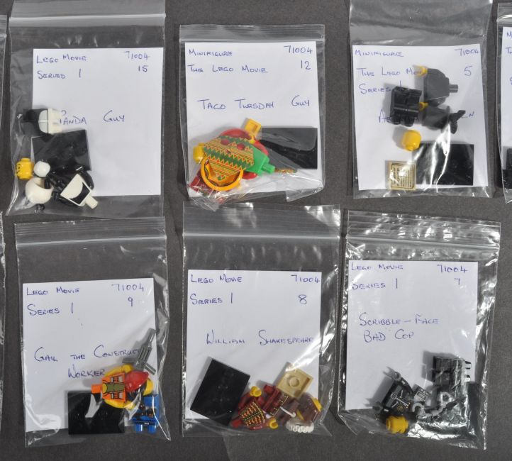Lego Minifigures - 71004 - Lego Movie Series 1 - a collection of x18 Lego Movie Series 1 collectable minifigures to include Abraham Lincoln, William Shakespeare, Gail The Construction Worker, Taco Tuesday, President Business, Wild West Wildstyle, Wiley Fusebot, Hard Hat Emmet. All minifigures 100% complete with accessory items. Unbagged.