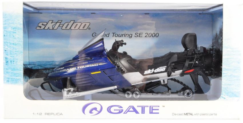 A boxed ' Global Gateway ' made 1/12 scale diecast model No. 01083 Snowmobile GT SE Grand Touring Ski-Doo. Detailed model appearing mint, within original box.