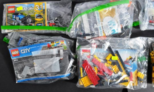 Lego - a collection of x12 bagged Lego sets - mostly labelled as complete by the vendor. Includes; 60178 Speed Record Club, 60181 Forest Tractor, 60165 4x4 Response Unit, 31054 Blue Express Building Toy, 60141 Police Station and others.