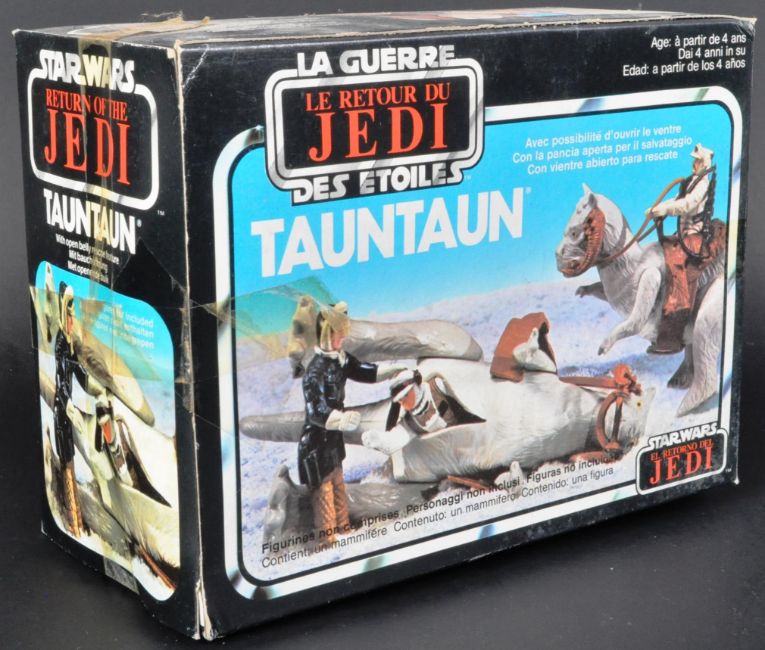 Star Wars - An original vintage 1980s (1983) Palitoy made Star Wars action figure playset ' Tauntaun - With Open Belly Rescue Feature '. The figure complete with reigns and both sections of the 'soft belly' (reins unbroken). Supplied with the original instructions sheet, and housed in its Return Of The Jedi Box. From a genuine childhood collection.