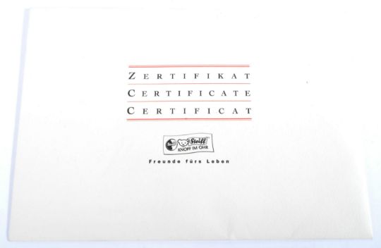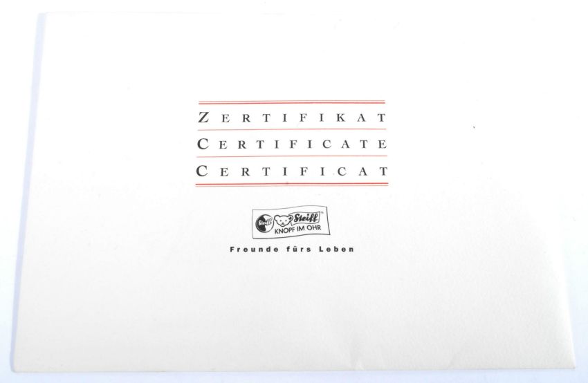 A Limited Edition German Steiff made soft toy teddy bear 404115 ' Bear 28 PB 1904 ' with certificate and X-Ray. The bear being a 1904 replica example with brown curly mohair,  black wooden eyes and sealing-wax nose. The trademark stainless steel elephant button to the left ear. Measures approx 40cm.
