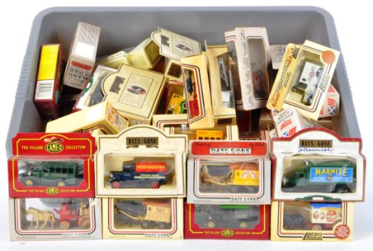 A large collection of approximately x50 assorted Lledo Days Gone, Corgi Cameo Cameo Collection and Matchbox Models of Yesteryear diecast model cars. Largely advertising related / promotional models with some haulage and public transport models present. All within original boxes. Some unpunched.