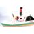 A retro mid 20th Century live boat / scratch built model in the form a steam boat fitted with a Mamod engine and rudders and propellers to the rear. Hand painted with with green and yellow stripes with 'Bristol Puffer' and 'Andjammar Lines Bristol' to the sides. Wear commensurate with age, overall good, engine not tested. Measures approx; 30cm x 78cm x 22cm.