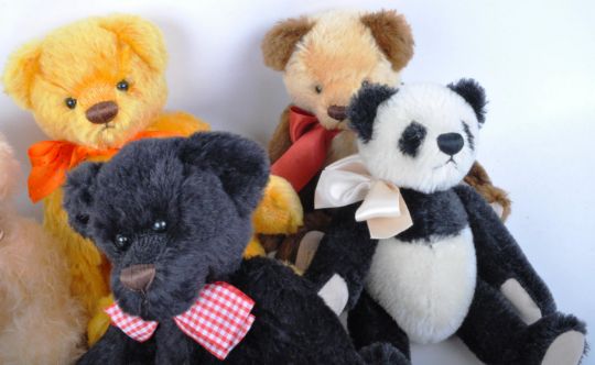 A collection of x12 assorted Limited Edition ' Dean's Rag Book ' collectors club membership teddy bears. A variety of coloured mohair, some with ribbon bow ties and certificates to the back with names and edition numbers. All with Dean's Rag Book labels to the feet.