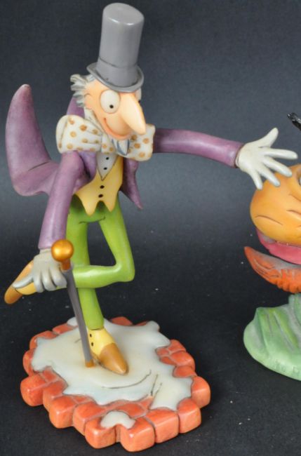 The World Of Roald Dahl - Robert Harrop - x5 figurines:RD17 Grandpa Joe, RD08 Fantastic Mr Fox, RD20 Augustus Gloop, RD01 Willy Wonka, RD07 George's Marvellous Medicine. Highly detailed resin statues based on the Quentin Blake illustrations for Roald Dahl stories. Figurines appear undamaged, but have been displayed (condition not guaranteed). Unboxed.